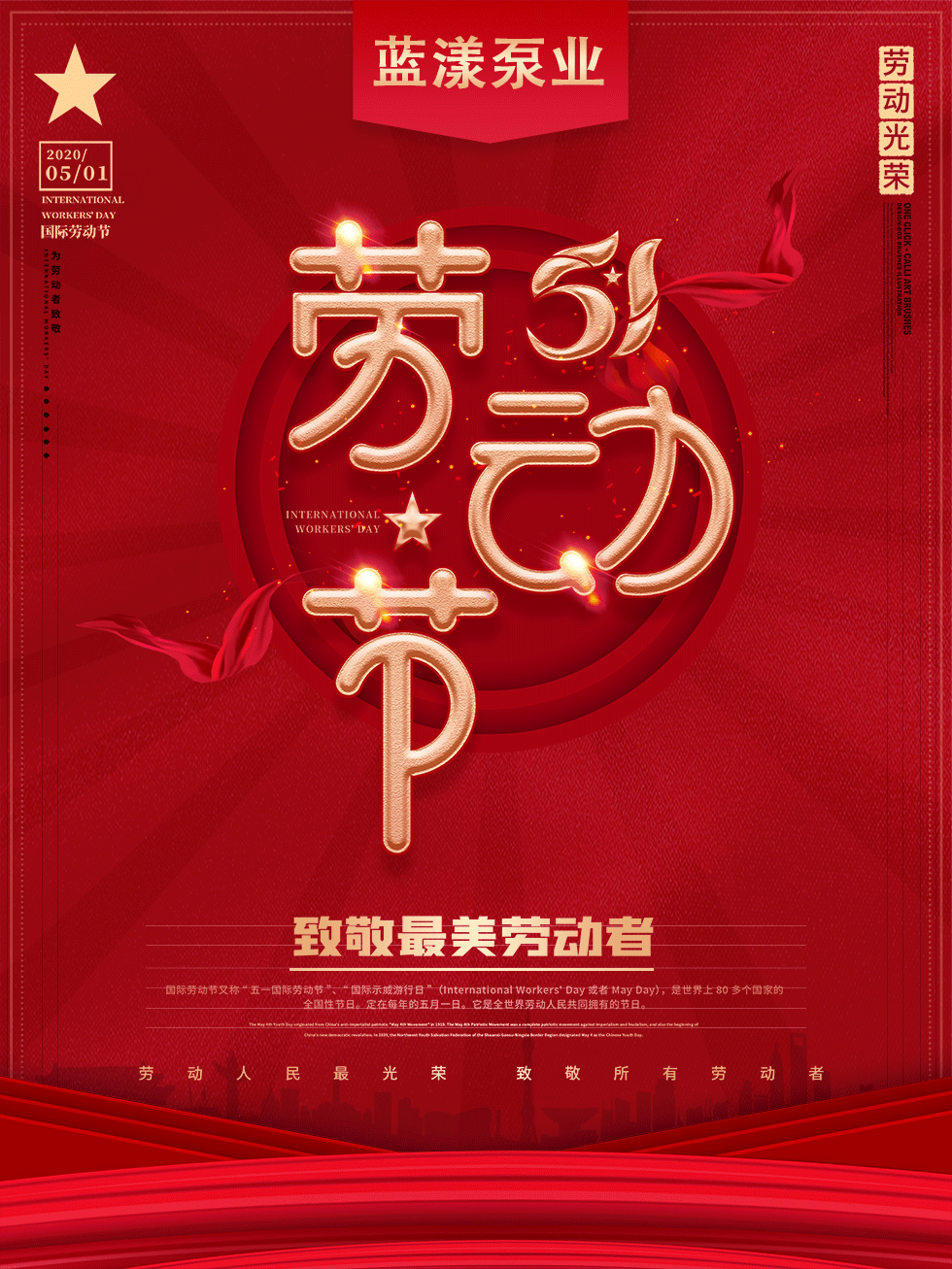 一年一度的五一小長假將至,在這里上海藍漾泵業(yè)制造有限公司向您及您的家人送出最真摯的祝福,提前祝大家勞動節(jié)快樂!